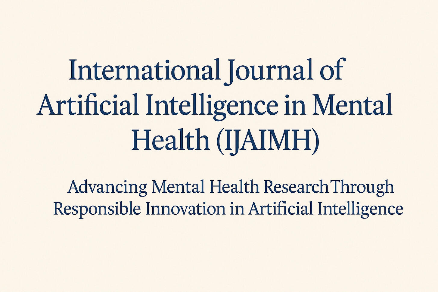 IJAIMH is a forthcoming, peer-reviewed, open-access academic journal dedicated to advancing mental health research, care, and policy through the responsible and innovative use of artificial intelligence. Currently in the process of organizing its inaugural editorial board and preparing for its first Call for Papers, IJAIMH is committed to providing an elite, interdisciplinary platform for researchers, clinicians, data scientists, and policy experts to collaborate at the forefront of computational mental health innovation.At IJAIMH, artificial intelligence is viewed as a powerful tool — not the primary object of study — for addressing critical challenges in mental health. The journal's focus is on leveraging AI methodologies such as machine learning, natural language processing, predictive analytics, and digital phenotyping to improve mental health outcomes, enhance diagnostic precision, inform treatment strategies, and reduce global mental health disparities.We will welcome original research articles, systematic reviews, meta-analyses, methodological innovations, perspectives, case studies, and protocol papers that demonstrate rigorous scientific methodology, ethical integrity, reproducibility, and a clear translational impact on mental health research, practice, or policy.IJAIMH is dedicated to advancing mental health research and practice through the responsible and innovative application of artificial intelligence technologies. At IJAIMH, artificial intelligence is viewed as a critical tool — not the primary object of study — for addressing complex challenges in mental health diagnosis, treatment, prevention, and policy development. The journal focuses on publishing high-quality interdisciplinary scholarship that leverages machine learning, natural language processing, predictive analytics, digital phenotyping, and other AI-driven methodologies to improve mental health outcomes across diverse populations. We welcome contributions from researchers, clinicians, data scientists, ethicists, and public health experts committed to using computational tools to enhance mental health understanding, promote equitable access to care, and foster global mental health innovation. All submissions should demonstrate scientific rigor, reproducibility, ethical integrity, and a clear translational impact on mental health research or practice.